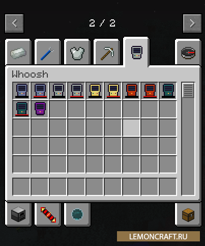 Мод Whoosh добавит в игру портативный телепорт (карманный). Данный мод является аддоном для мода Thermal Expansion. Карманный телепорт может работать в двух режимах: на короткие расстояния и на длинные расстояния. На короткие расстояния вы сможете телепортироваться даже через стены. Для телепортации на длинные расстояния используются координатные точки.